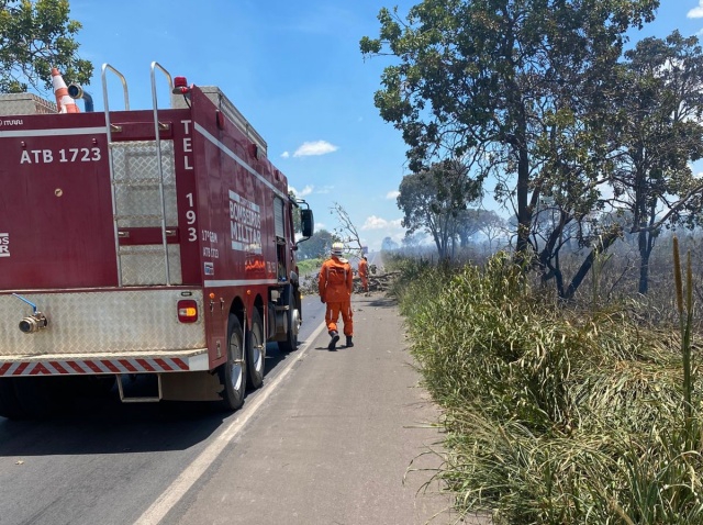 A guarnição de serviço foi rapidamente solicitada para conter as chamas e, no local, os bombeiros realizaram o combate aos focos com o uso de ferramentas e técnicas específicas. Além disso, foi necessária a retirada de uma árvore que havia caído sobre a pista, impedindo a passagem de veículos.