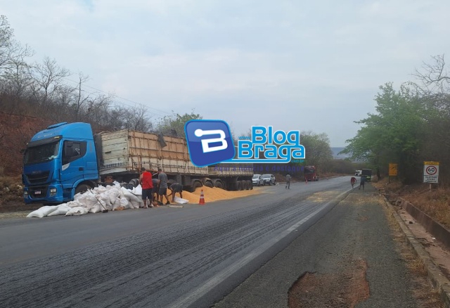 Não há registro de nenhum outro veículo envolvido, ninguém ficou ferido. A PRF sinalizou a via. A carreta que ficou em “L” chegou a bater no barranco e foi necessário colocar escoras para a manobra de retirada, pois havia a valeta de escoamento das águas.
