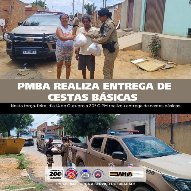 Na manhã desta terça-feira (14), a 30ª Companhia Independente de Polícia Militar (CIPM) realizou uma ação social de entrega de cestas básicas na cidade de Santa Maria da Vitória, beneficiando famílias cadastradas no CRAS (Centro de Referência de Assistência Social).