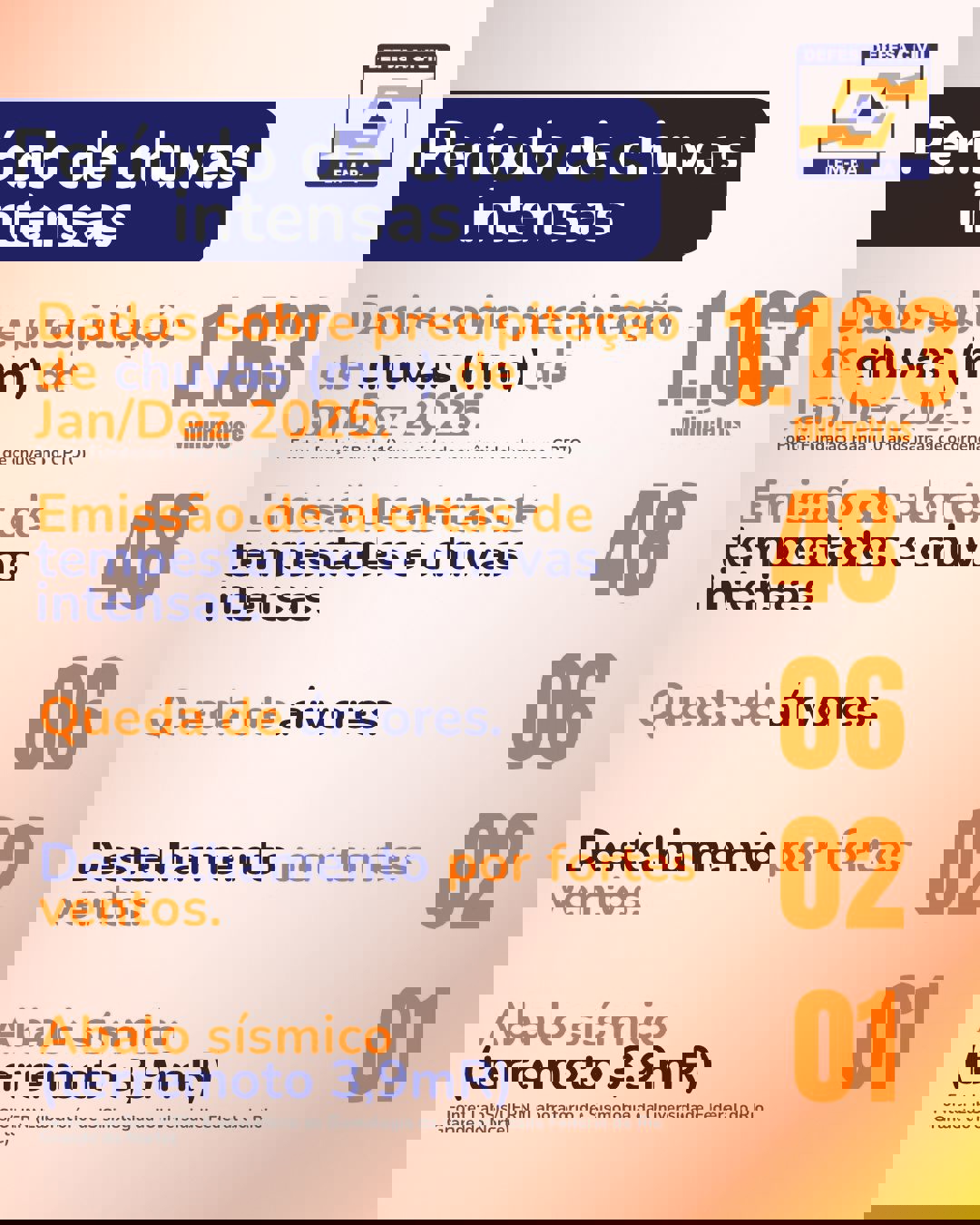 ⛈️ Chuvas: entre 20 a 30 mm/h ou 50mm/dia