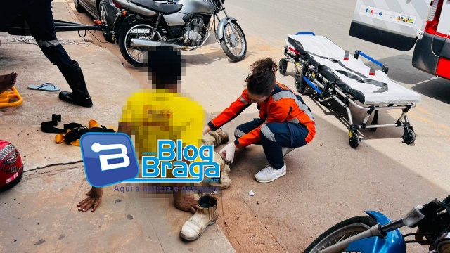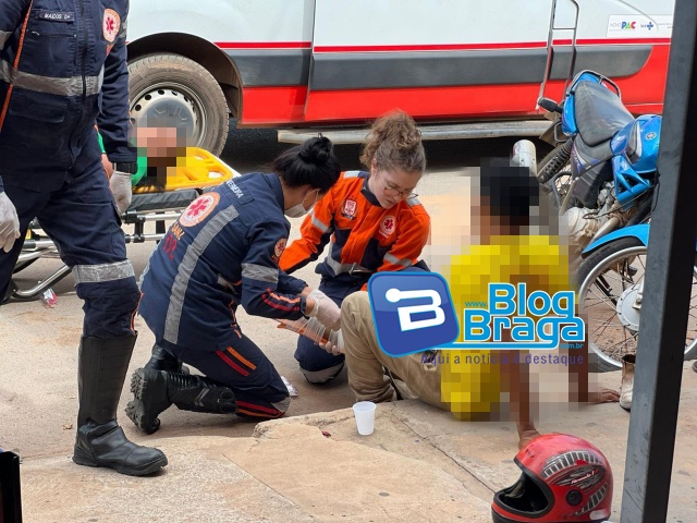 O condutor da motocicleta foi encontrado ao solo, consciente e orientado, relatando dores no membro inferior direito. A equipe do Corpo de Bombeiros realizou a imobilização da vítima e prestou os primeiros atendimentos pré-hospitalares ainda no local.