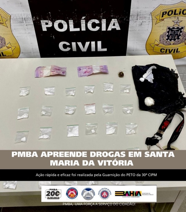PETO 30ª CIPM apreende drogas em Santa Maria da Vitória