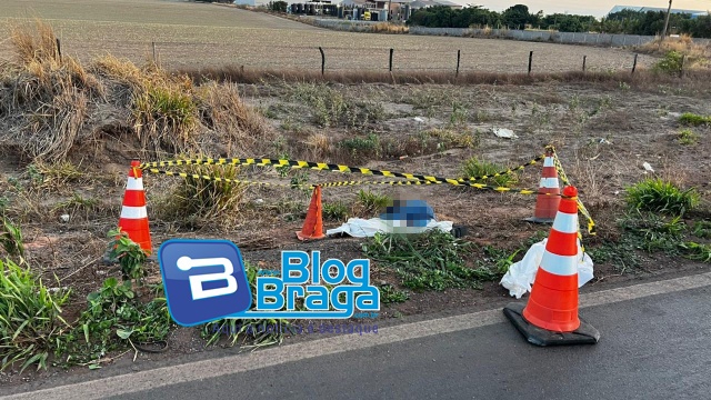Com o impacto, a motocicleta e o condutor foram arremessados para fora da pista, caindo às margens da rodovia.