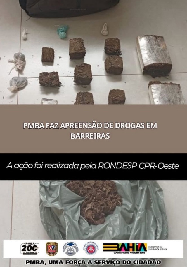 Ao retornar ao local, as guarnições localizaram uma mochila preta, contendo substâncias análogas a maconha e cocaína. Todo o material apreendido foi encaminhado à Delegacia Territorial de Barreiras para adoção das medidas legais cabíveis.