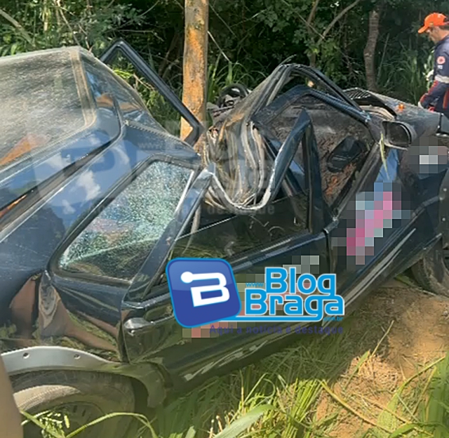 Motorista perde controle do veículo sofre capotamento e bate violentamente contra uma árvore na BR-242
