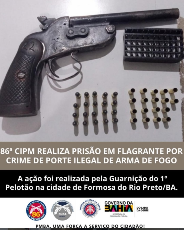 FORMOSA DO RIO PRETO: PM APREENDE ARMA DE FOGO APÓS ACOMPANHAMENTO POR DIREÇÃO PERIGOSA