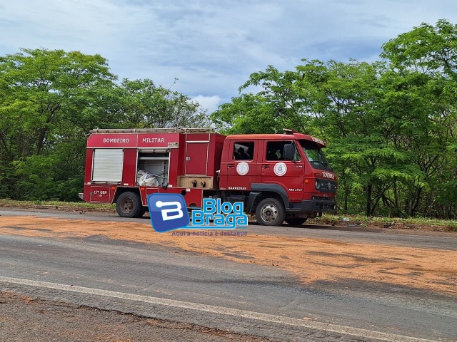 A equipe do 17º BBM espalhou pó de serra na pista por conta da quantidade de óleo derramado.