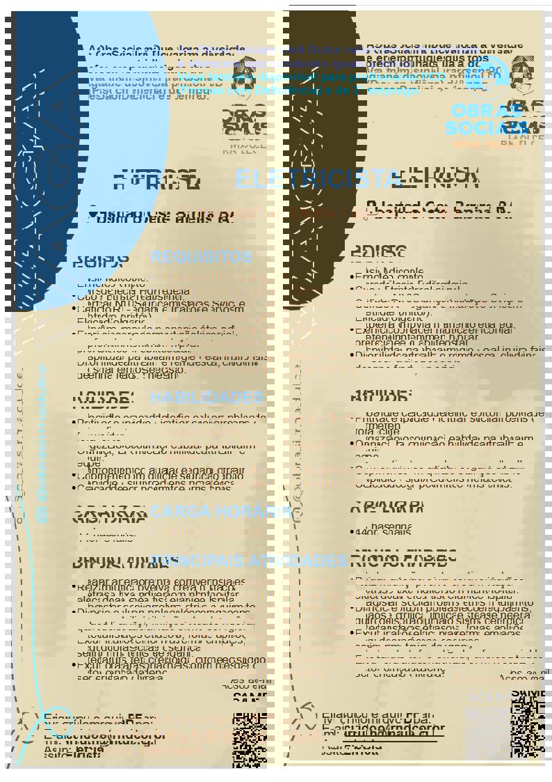 HOSPITAL DO OESTE VAGA DE EMPREGO: ELETRICISTA