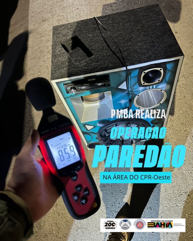 Neste fim de semana, a A Polícia Militar da Bahia (PMBA), por meio do Comando de Policiamento da Região Oeste (CPR-O), realizou mais uma edição da Operação Paredão, com o objetivo de combater a poluição sonora, coibir práticas que perturbem o sossego público e reforçar a sensação de segurança da população.