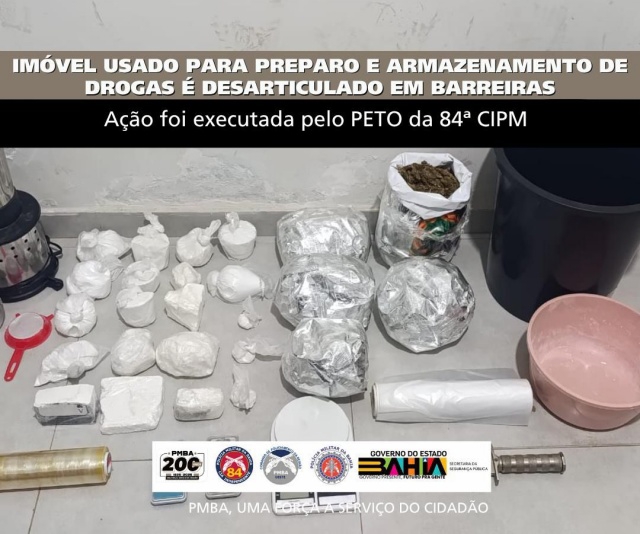 Barreiras: Polícia Militar desarticula local usado para preparo e armazenamento de drogas