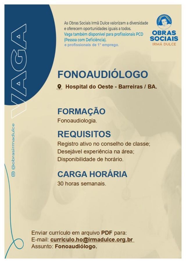 URGENTE – HOSPITAL DO OESTE OFERECE VAGA PARA FONOAUDIÓLOGO