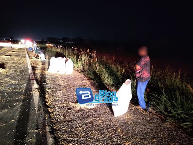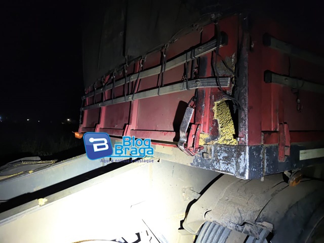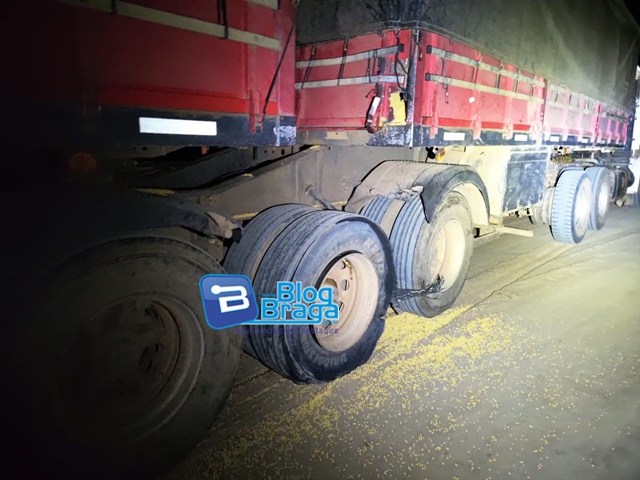 Por volta das 19h40 desta terça-feira (17), uma carreta carregada com soja estourou um pneu na BR-020, a cerca de 15 km de Luís Eduardo Magalhães. Com o impacto, a carroceria se abriu e a carga se espalhou pela rodovia, deixando a pista escorregadia por mais de 1 km.