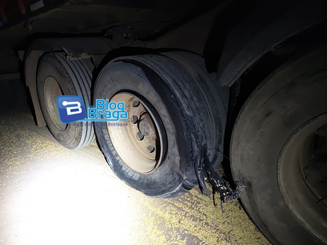 O motorista da carreta perdeu o controle do veículo e saiu da pista, parando aproximadamente 3 km do local onde o pneu estourou. A Polícia Rodoviária Federal (PRF) esteve no local, ouviu o motorista e o conduziu na viatura para prestar esclarecimentos.