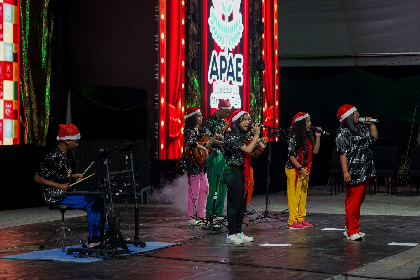 Abrindo o palco principal, a APAE apresentou a Banda Explosão, formada por alunos da instituição. A apresentação emocionou o público e destacou a importância da inclusão, da valorização de talentos e do respeito às diferenças.