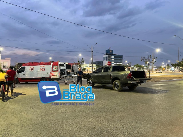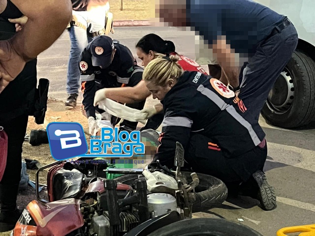 Uma colisão entre uma motocicleta e uma caminhonete deixou um homem gravemente ferido no fim da tarde deste domingo (12), por volta das 17h55, no cruzamento da Avenida Barreiras com a rua Paraná, no centro de Luís Eduardo Magalhães.