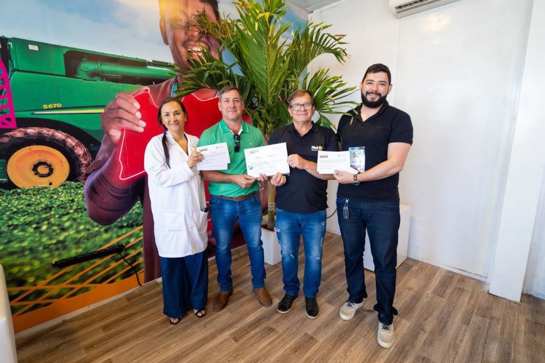 O Secretário de Agricultura de LEM, Kenni Henke, o produtor Osmar Cappellesso, o prefeito Junior Marabá e a diretora de Agricultura de LEM, Gabriela Brasil.