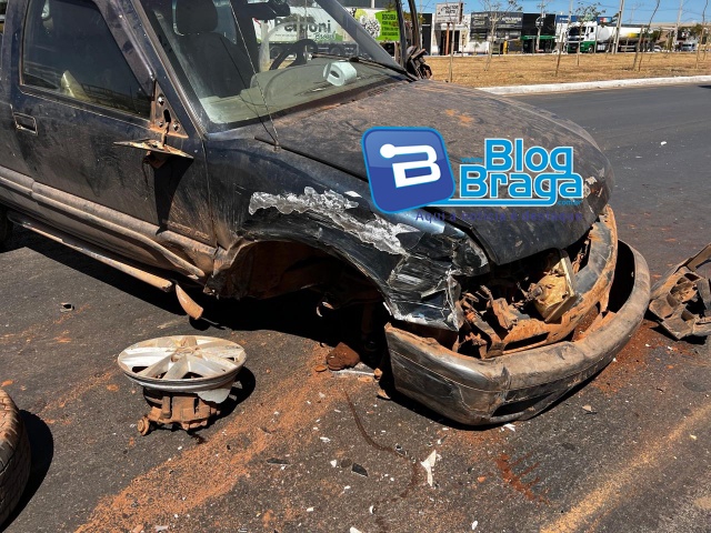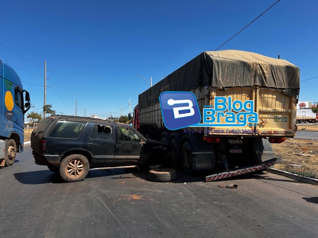 De acordo com informações, o veículo GM/Blazer transitava pela BR/242 em direção ao trevo que dá acesso ao Setor Industrial, momento que foi fechado e atingido na lateral esquerda por um outro veículo. O motorista da Blazer perdeu o controle e acabou colidindo na lateral esquerda de uma carreta que estava estacionada de forma proibida no acostamento da via. Com o forte impacto, a Blazer teve a roda dianteira do lado direito arrancada.