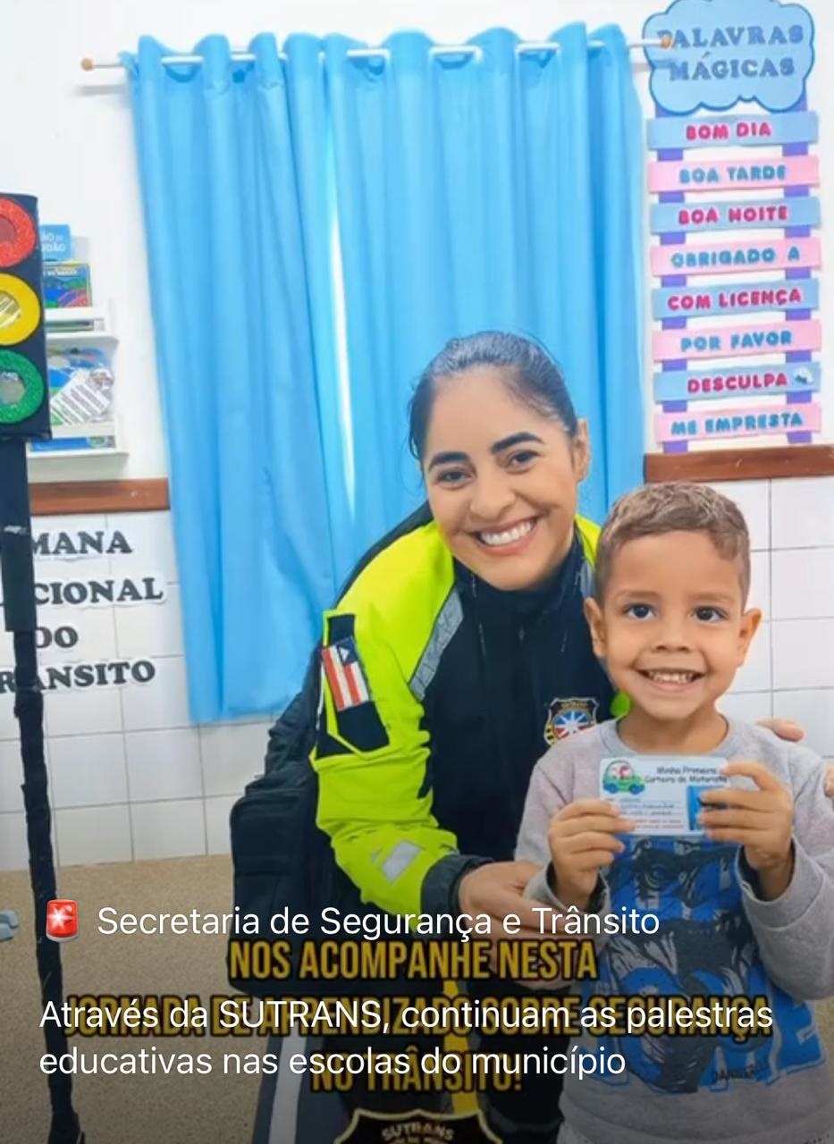 Dando continuidade ao ciclo de palestras da Semana Nacional do Trânsito, os agentes da SUTRANS estão visitando diversas escolas do município, promovendo orientações educativas voltadas às crianças.