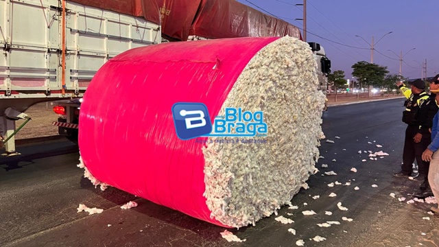 No fim da tarde deste sábado (4) por volta das 17h55, um rolo de algodão com aproximadamente 3 toneladas, caiu de um caminhão que seguia pela BR-242, em direção a Barreiras, em Luís Eduardo Magalhães.