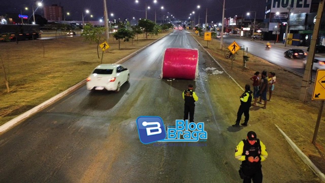 A SUTRANS esteve no local, sinalizou a via e realizou a retirada do rolo do meio da pista, colocando-o no acostamento. A empresa responsável pela carga foi acionada e providenciou a remoção completa do material.