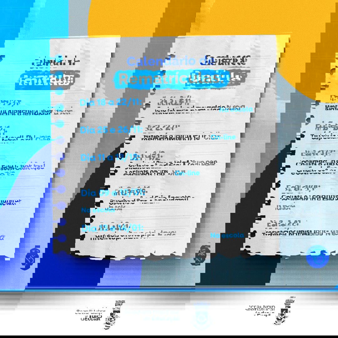 De 11 a 13 de dezembro, através do portal www.matriculalem2025.com.br será a vez dos alunos do 2º ano que irão para o 3º ano, e 5º ano, que irão para o 6º ano.