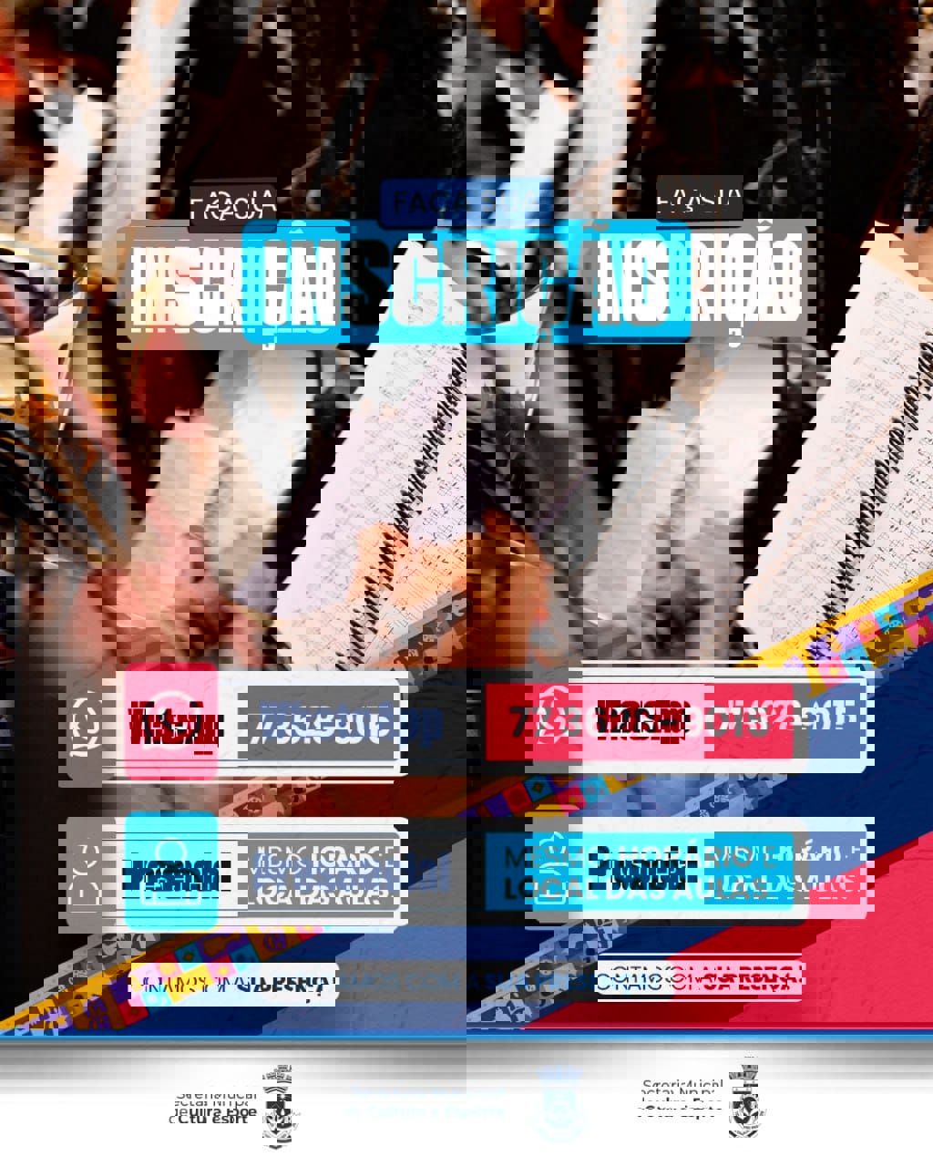 Informações e inscrições pelo WhatsApp da Secretaria: (77) 3628-9015 ou nos locais das aulas.