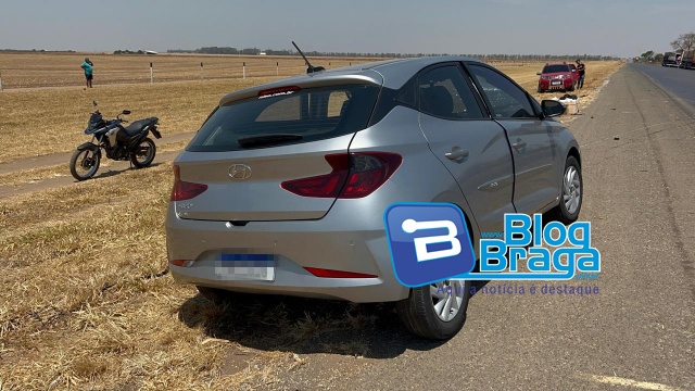 O condutor da carreta relatou que ainda tentou desviar ao máximo, mas o carro acabou atingindo a lateral esquerda do vagão. Com o impacto, o HB20 rodou na pista e ficou danificado.